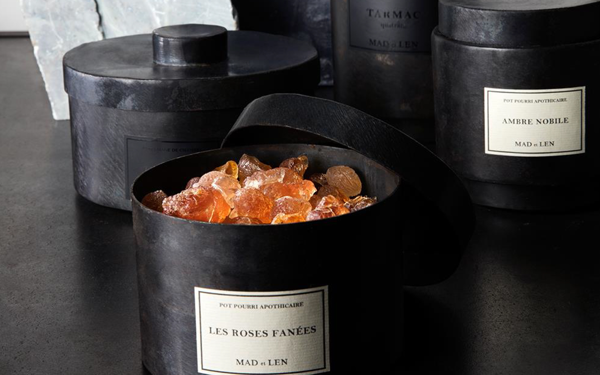 一路以來,夫妻兩人遵循傳統調香的手法,精心混和著各種陳香以及手工研磨的香料精油,調配出獨樹一格的奢華氣息,而除了大家耳熟能詳的家居香氛之外,在MAD et LEN的香水系列中,低調亮面的黑色玻璃罐搭配金色的Logo字體,再加上MAD et LEN一貫堅持的純手工打造黃銅蓋,在展現個性之餘,也同時增加保存的特色,讓香水安定而不輕易揮發。