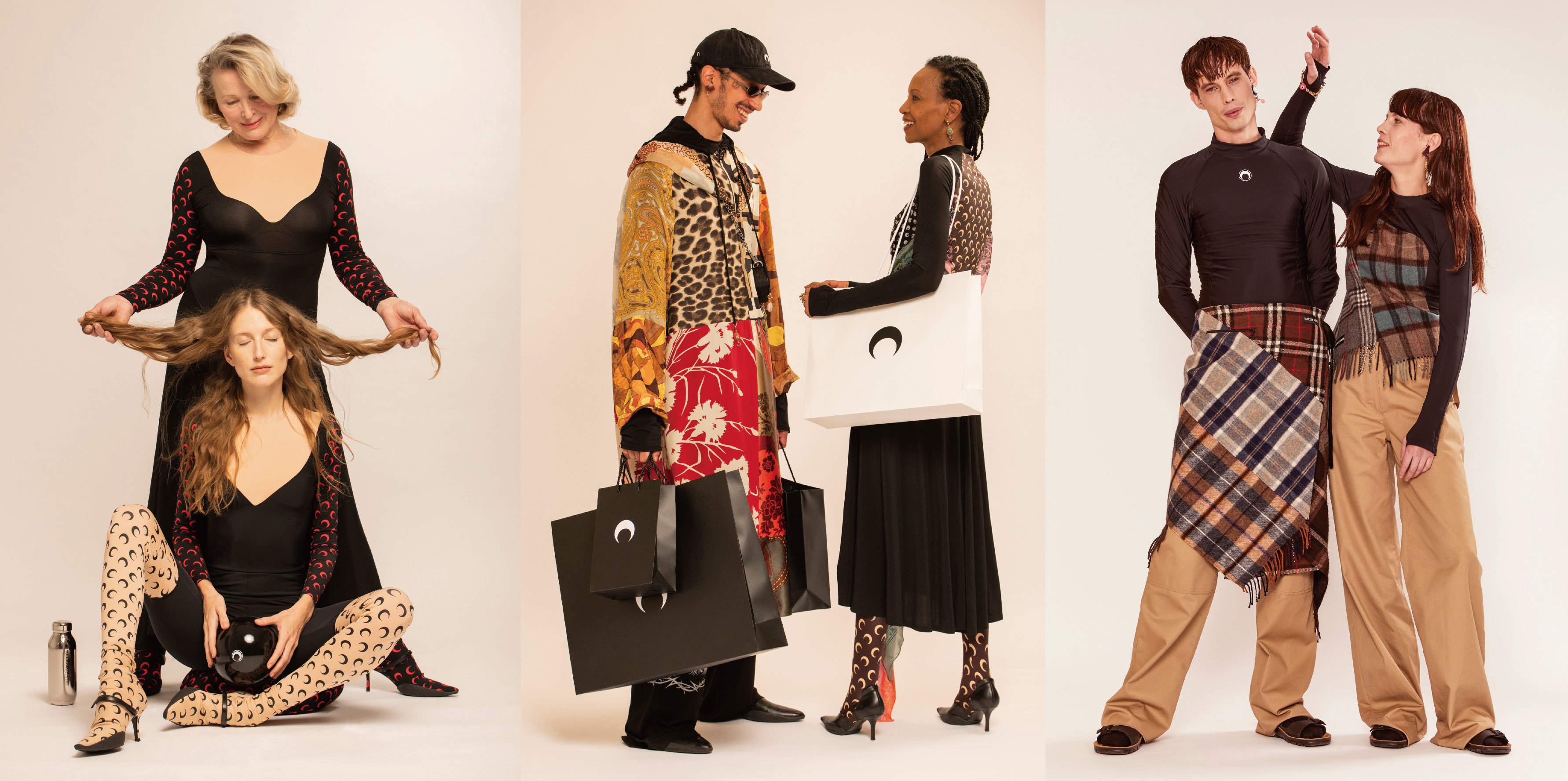 如果細心留意,也不難發現“新月”印花在Marine Serre中扮演著重要的角色,這個與眾多文化和宗教都有關聯的符號,已經成了官方的標誌, 然而不只是擅長透過設計探討當代社會現象,從過去幾季的大秀,無論是20春夏《Marré Noire 黑潮》反思石油污染的問題,或是19秋冬以《Radiation》為題探看輻射外洩的末日情景,都不難看出設計師對於環境保育議題的重視。