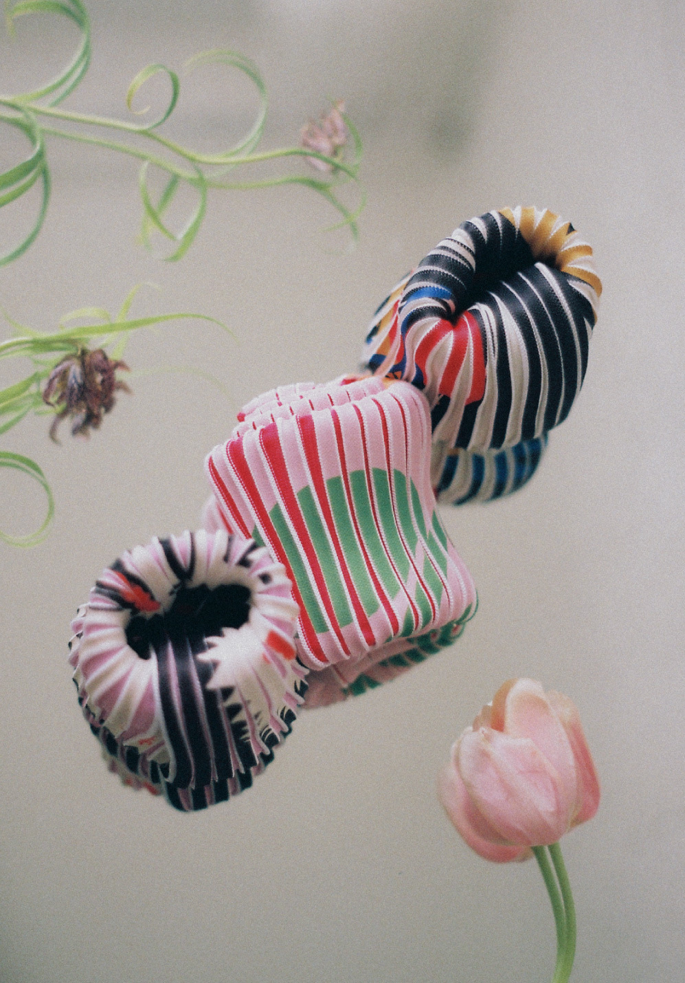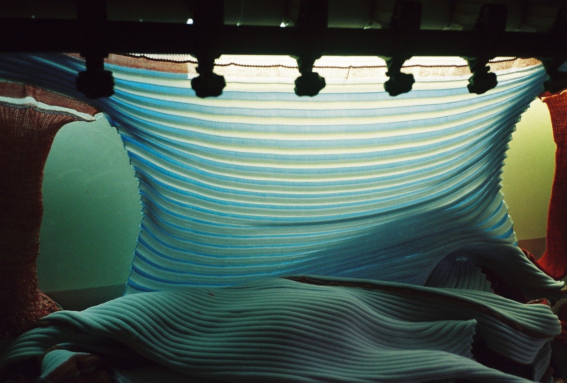 藝術家黃郁媚YU MEI HUANG,畢業於英國皇家藝術學院女裝針織碩士,作品多使用纖維材料及複合媒材。從材質出發,以針織技法貫穿,作品關注於人與纖維之鏈結。
