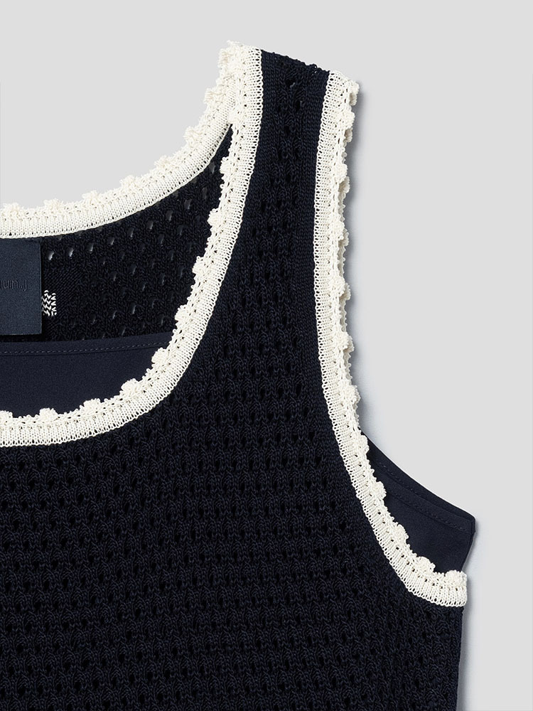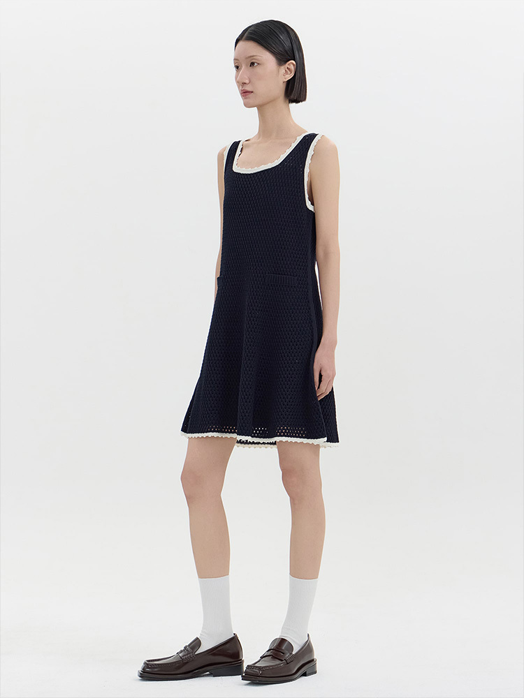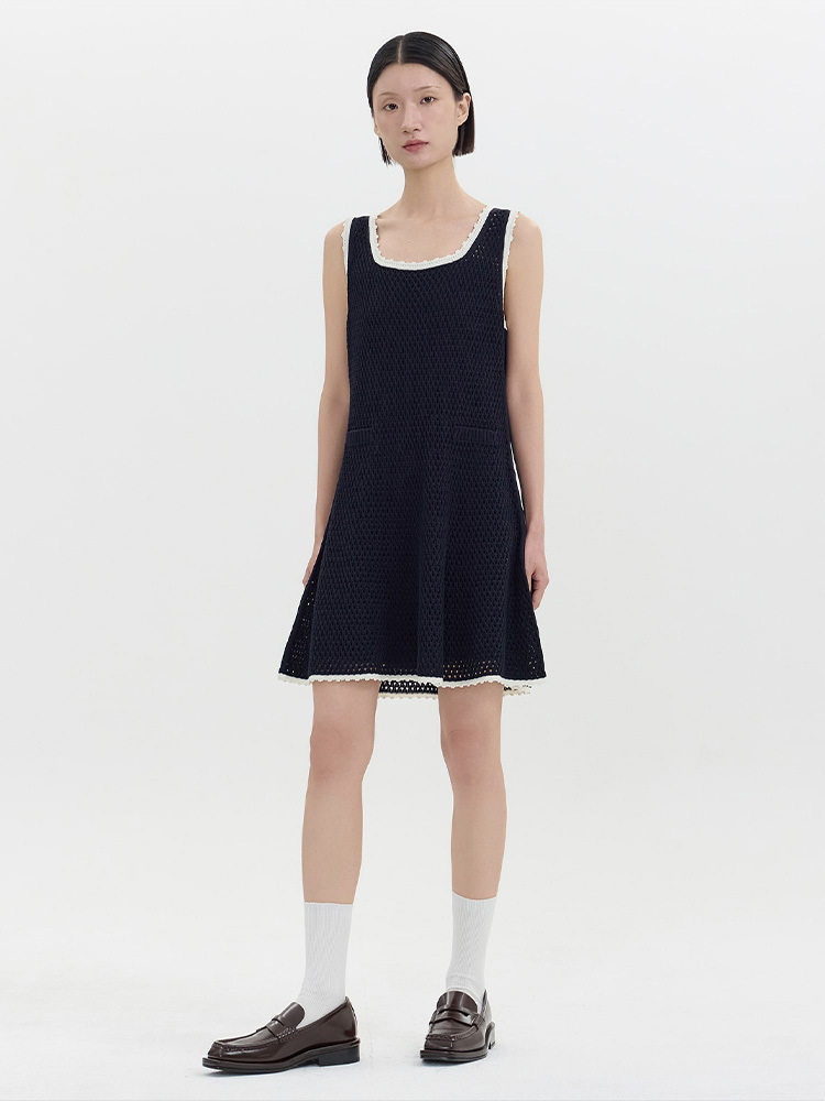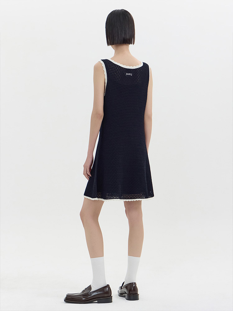 - 準備品牌女性款鉤織無袖迷你洋裝