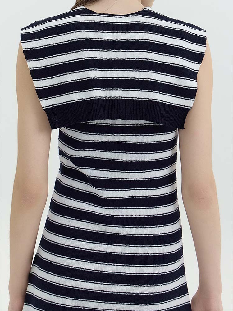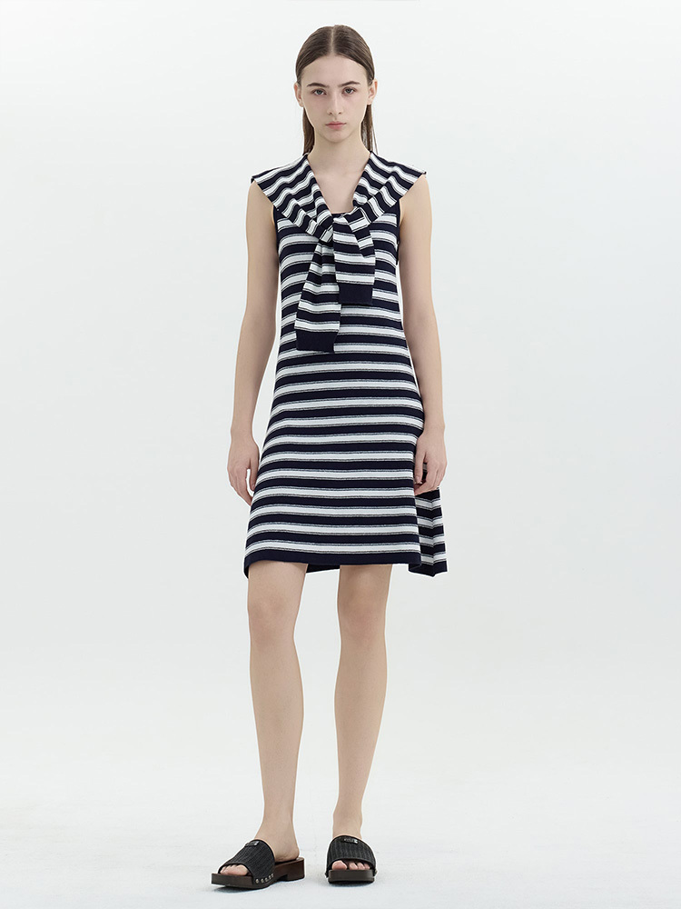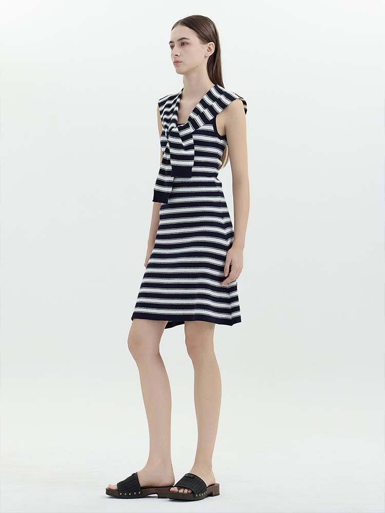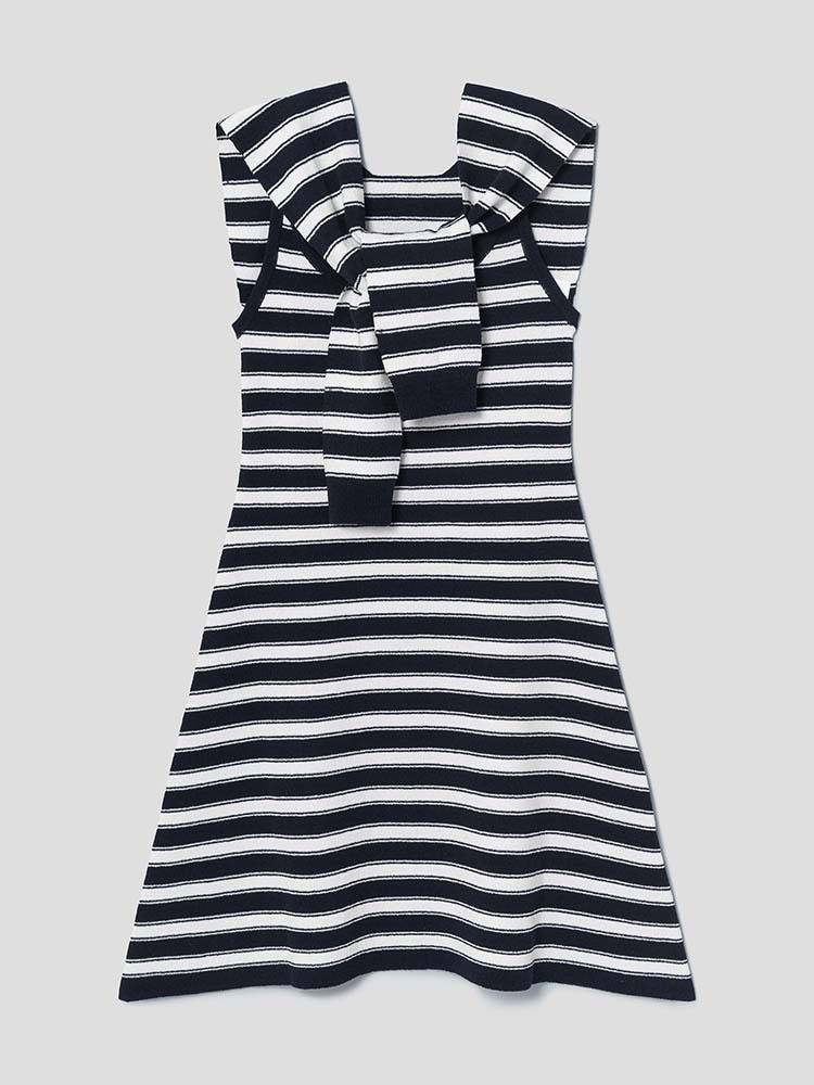 - 女裝可拆式圍巾細節條紋針織迷你洋裝