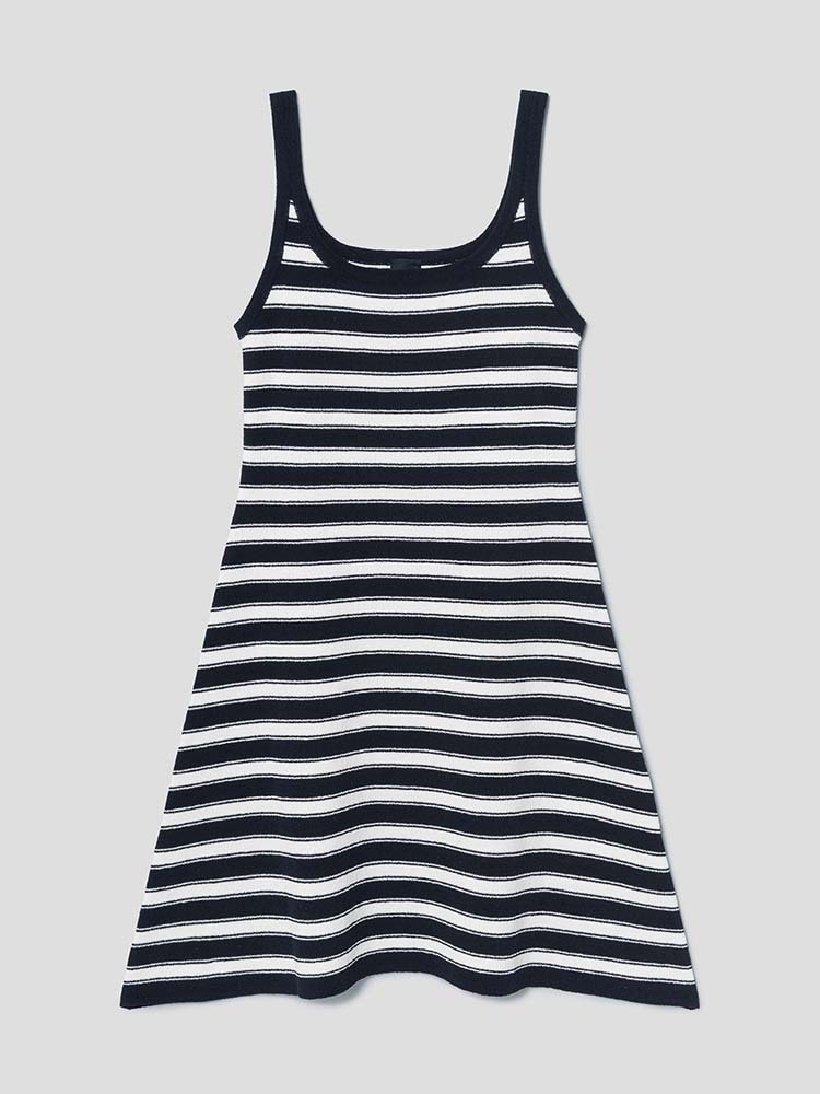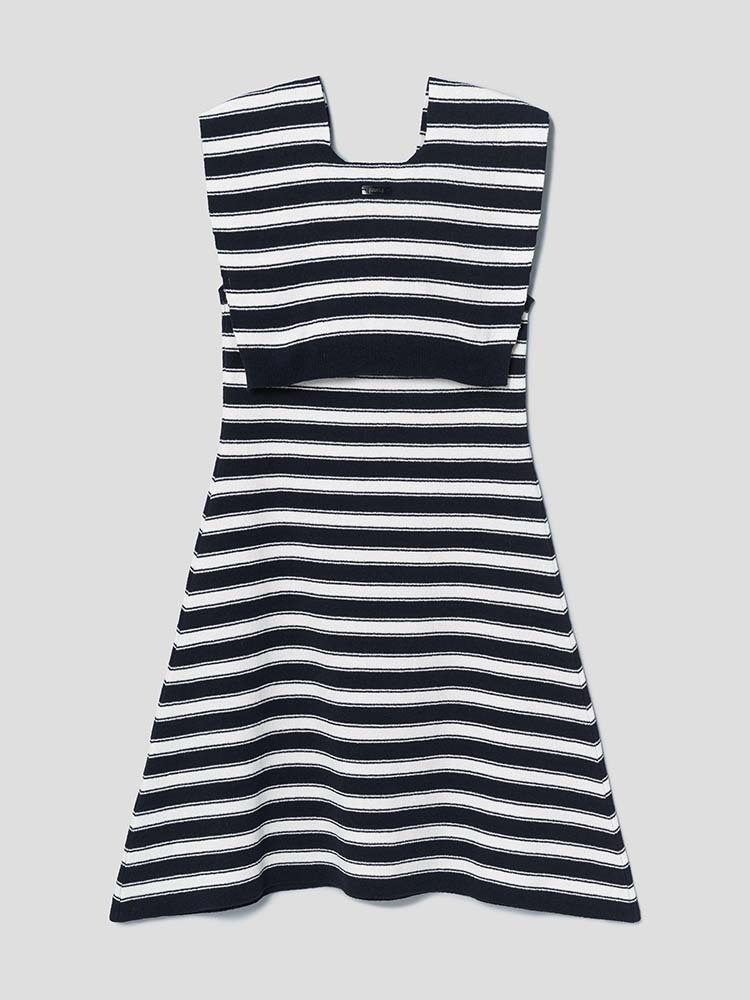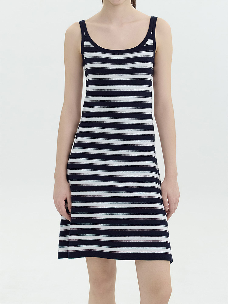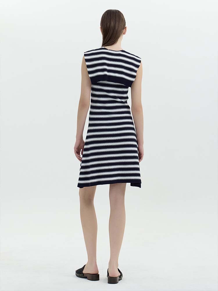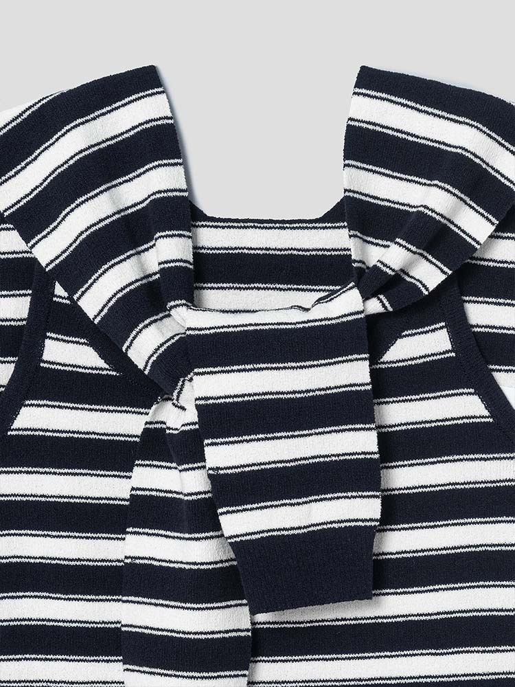 - 女裝可拆式圍巾細節條紋針織迷你洋裝