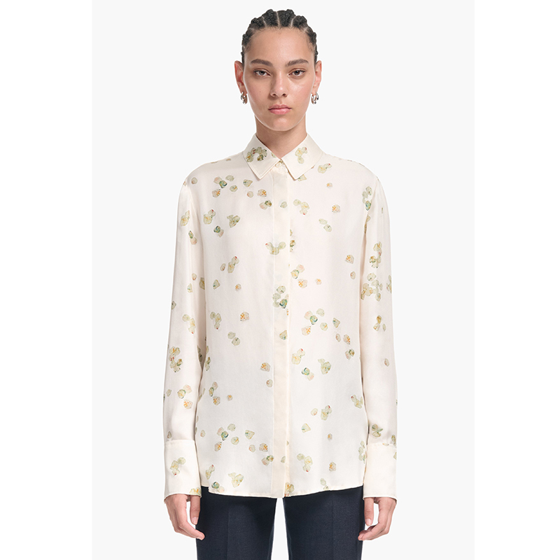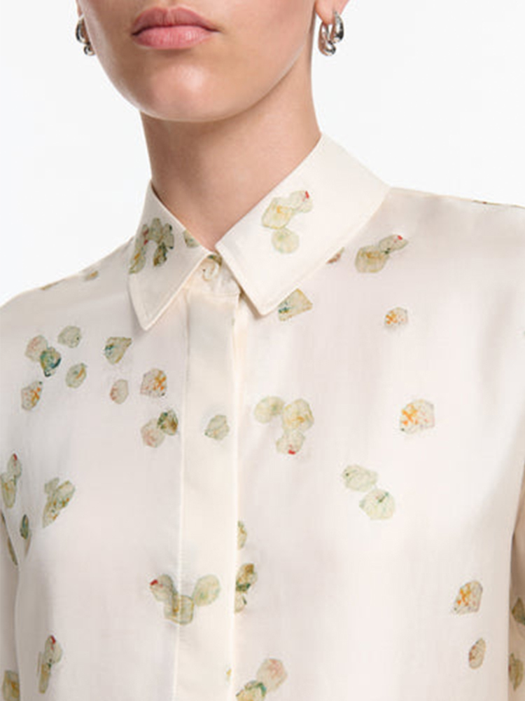 - 這款休閒上衣設計輕鬆優雅,配有小尖領和隱形紐扣前襟