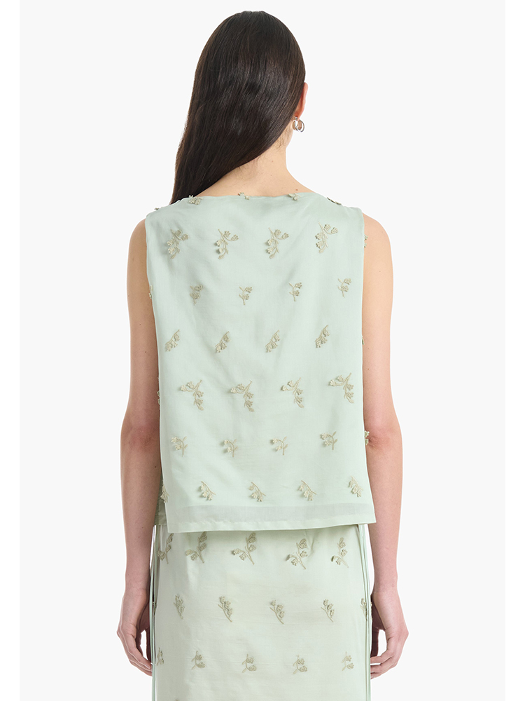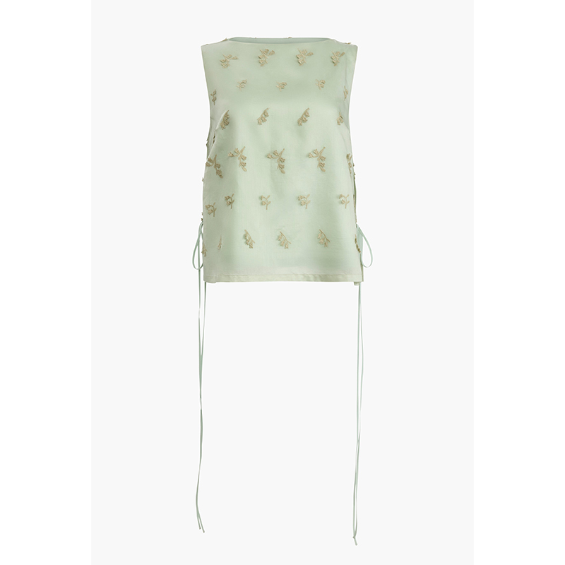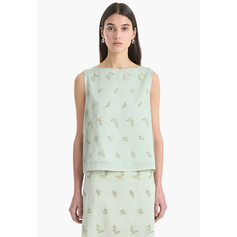 - Siggi 上衣採用寬鬆的無袖輪廓和寬領設計