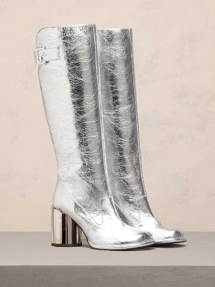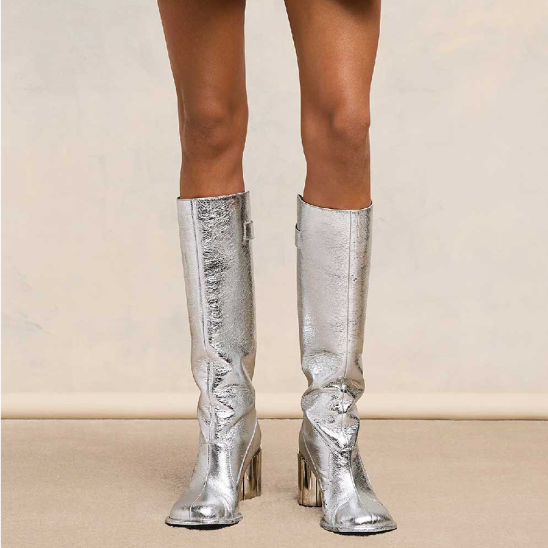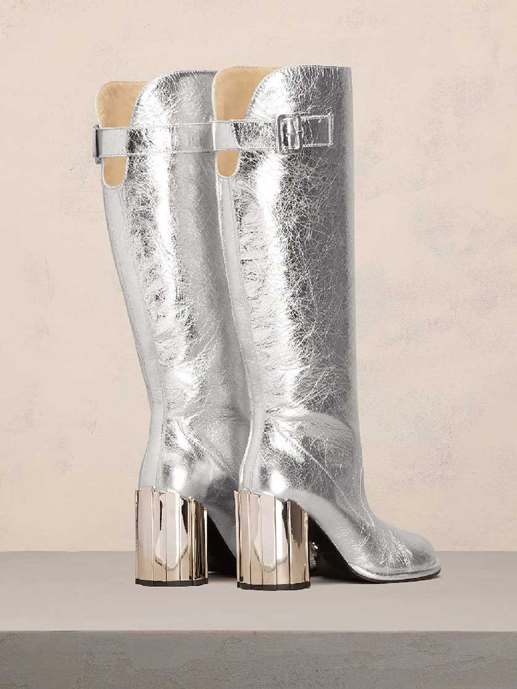 - 金屬皺褶皮革解剖鞋頭扣帶靴