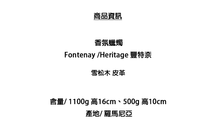 [BAOBAB COLLECTION] 香氛蠟燭 Fontenay /Heritage 雪松木 皮革 豐特奈 1100g (高16cm) / 500g (高10cm)
