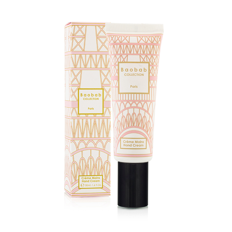 這款巴黎香氛護手霜採用50毫升軟管包裝,飾以風格化的艾菲爾鐵塔圖案,與我們的身體護理系列相得益彰。