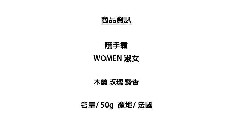 [BAOBAB COLLECTION] 護手霜 WOMEN 木蘭 玫瑰 麝香 淑女 50ml