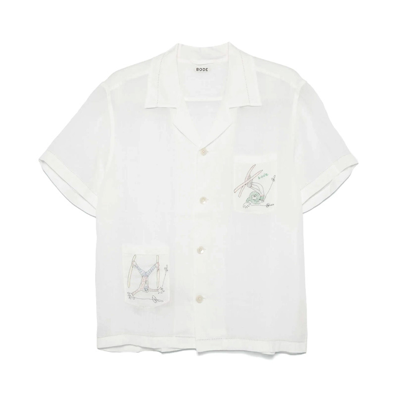 [BODE] 品牌推薦 白色口袋滑雪刺繡圖騰短袖襯衫 UNISEX 韓星最愛