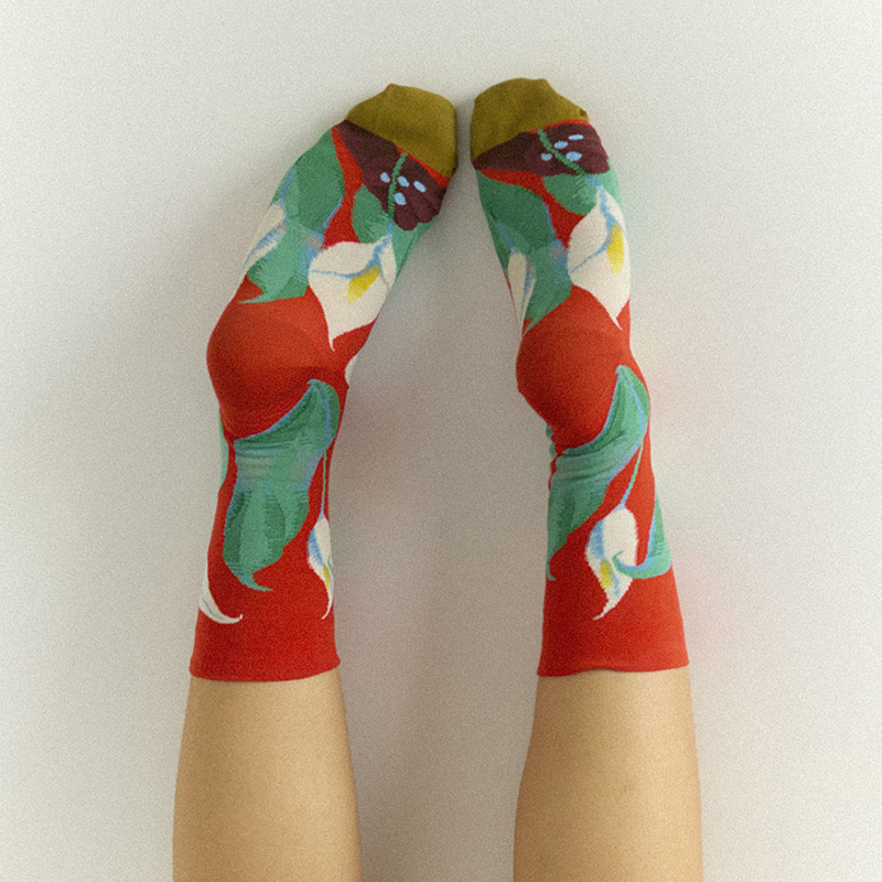 [Bonne Maison] 紅色花卉襪子