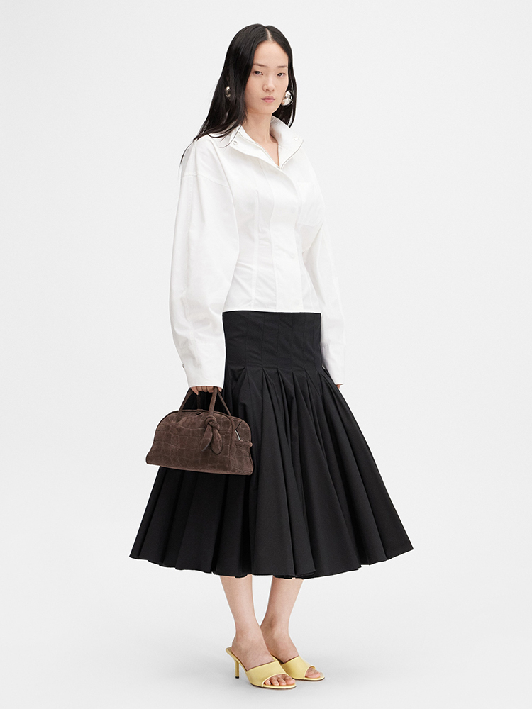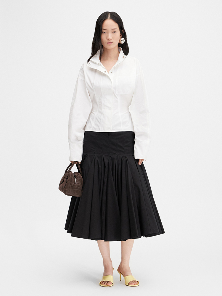 - 臀部以下呈現蓬裙剪裁,內襯薄紗增添份量