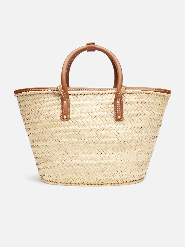 - 手工編織籃狀包袋,飾有光滑皮革細節