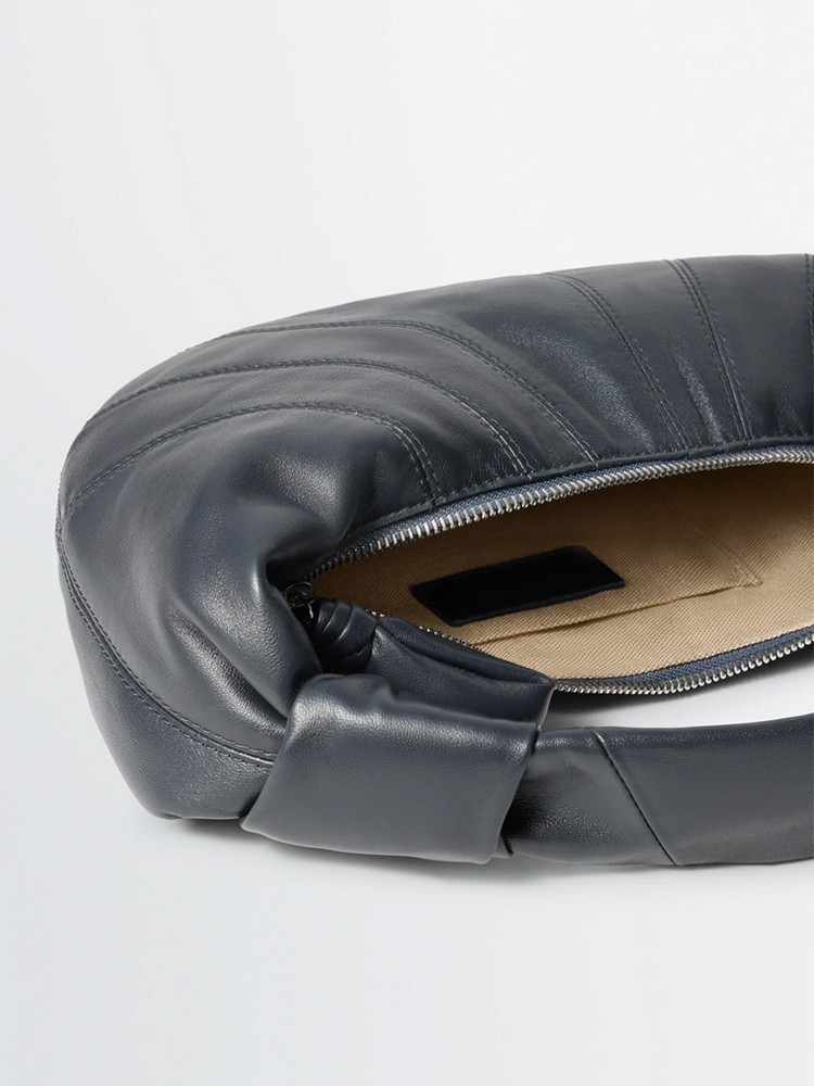 - 同色布料包覆金屬拉鍊頭,附扣環設計