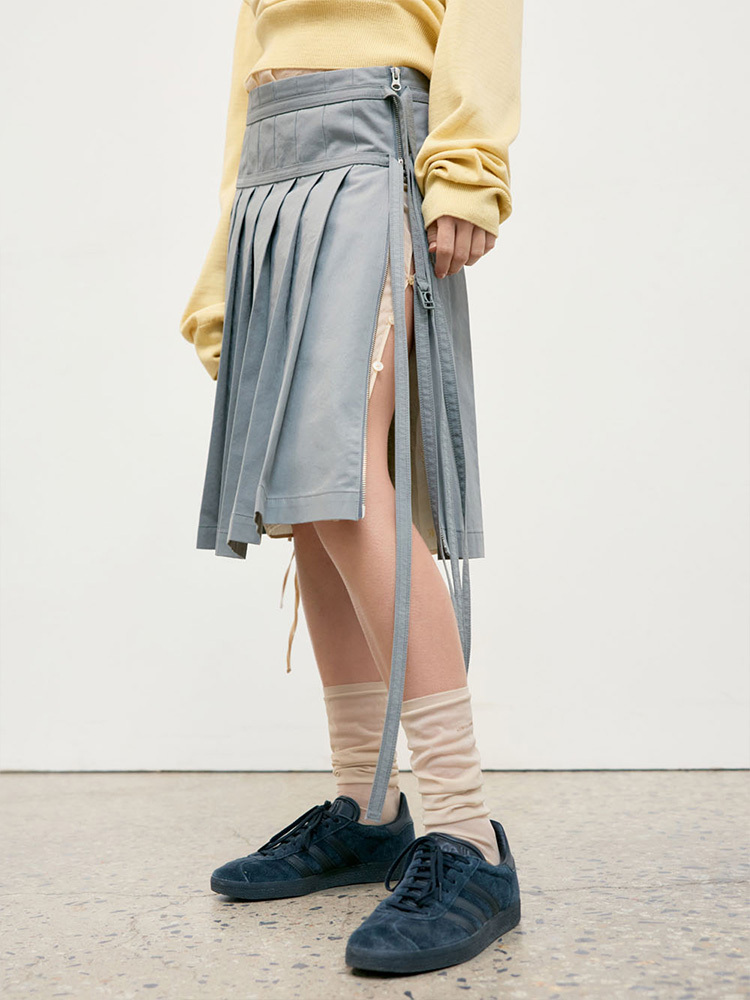 - 腰部環繞式綁帶搭配品牌標誌裝飾細節
