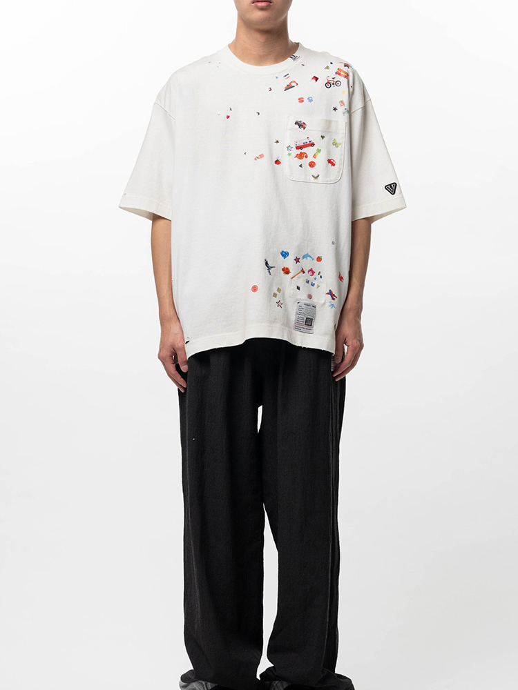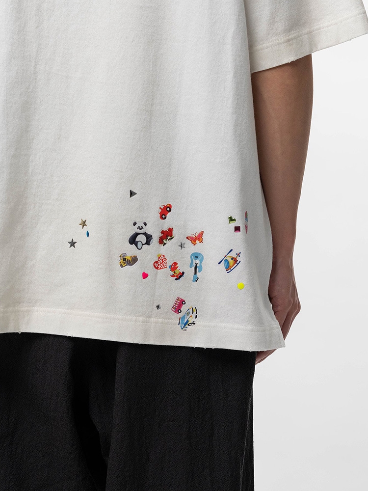 - 全身貼紙印花設計,營造復古做舊感
