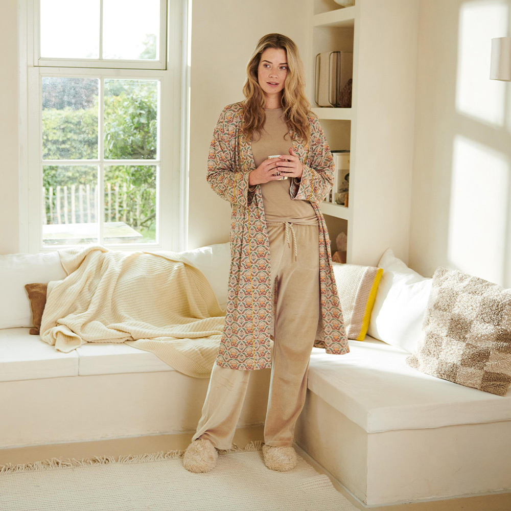 Britta 長褲天鵝絨純色沙色由奢華天鵝絨製成,含 80% 棉和 20% 聚酯纖維,使這款褲子具有極好的彈性,穿著舒適。鬆緊腰帶和條紋平紋針織抽繩確保完美貼合,直筒褲管和微喇剪裁打造優雅外觀。純色沙色設計使這款褲子成為漂亮的基本款,您可以輕鬆混搭。