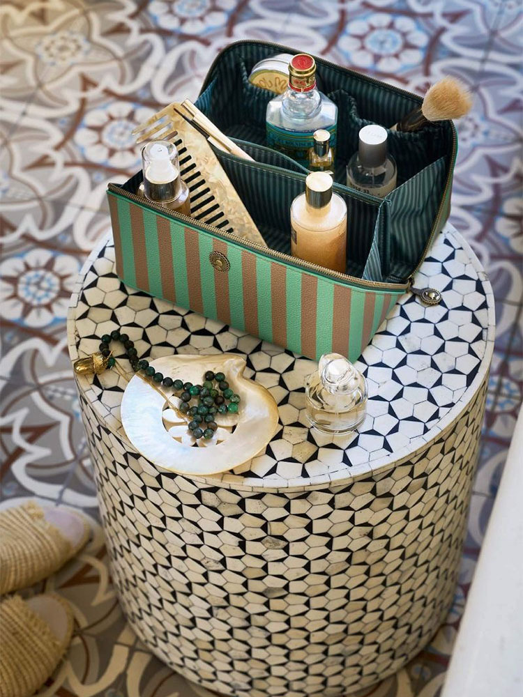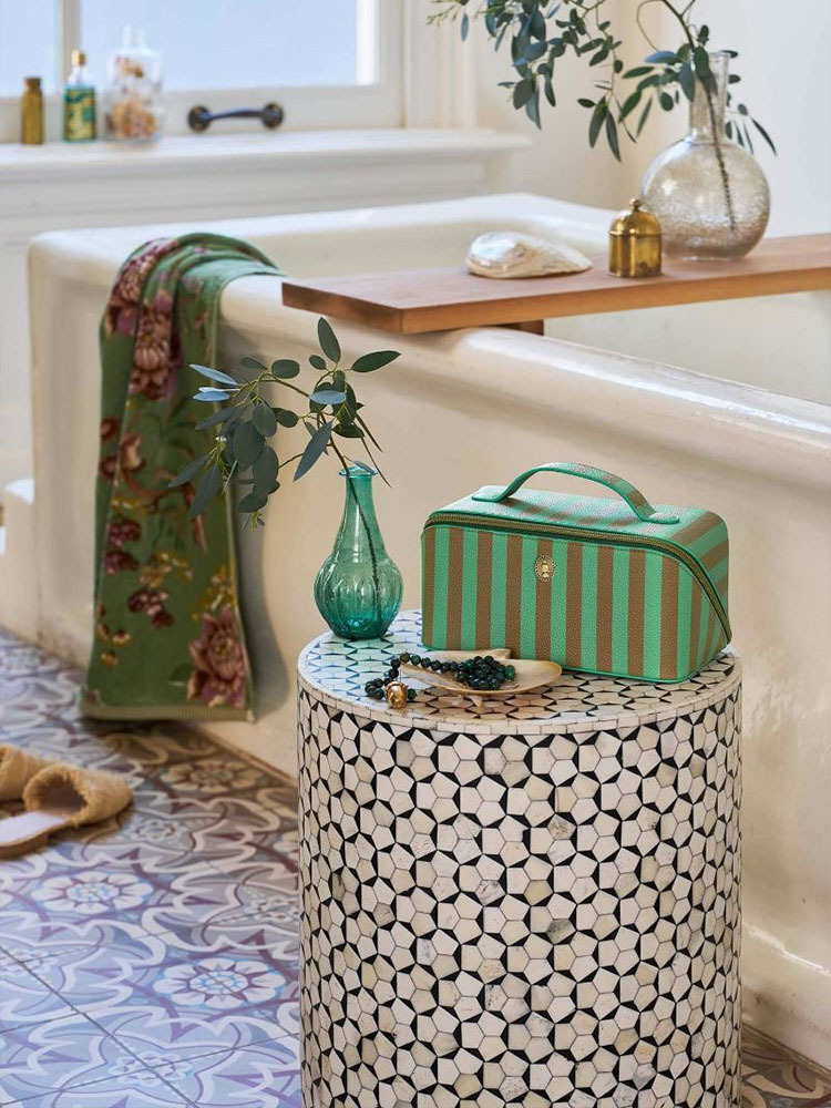 [PIP Studio] Cyrille 綠色化妝包 - 條紋中款