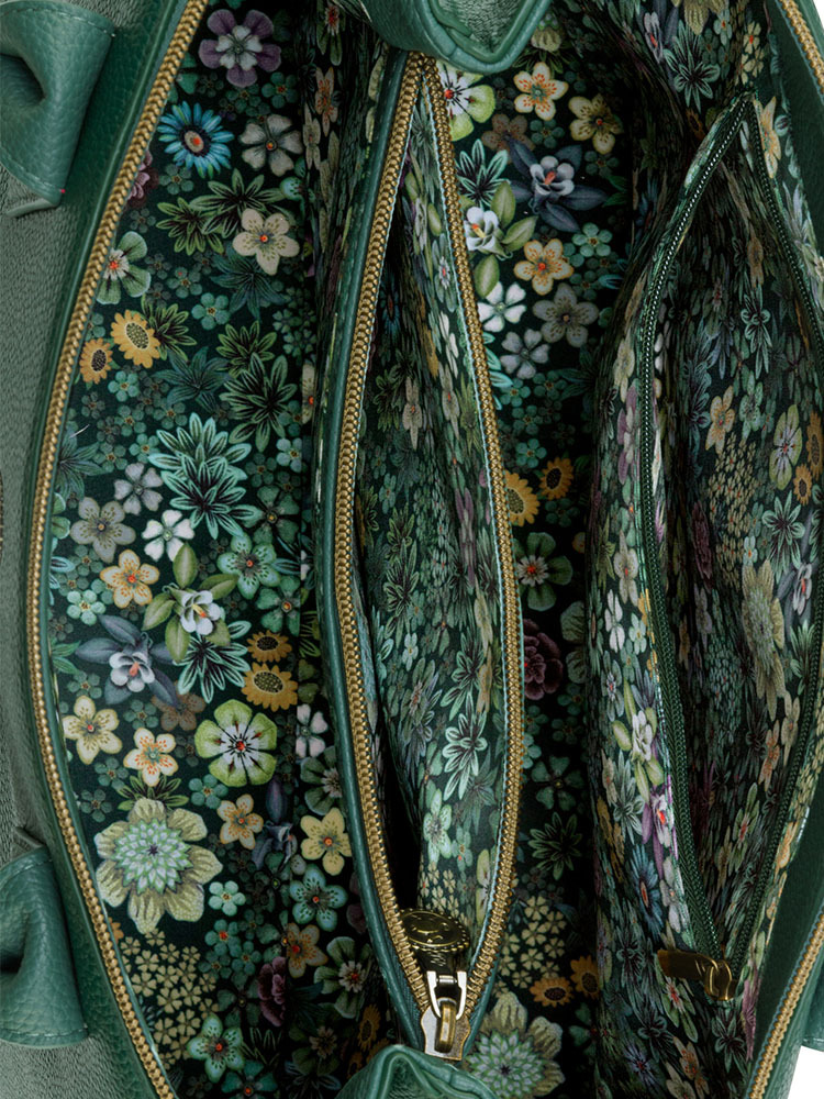 內襯採用花卉布料裝飾,雙隔層設計搭配數個收納口袋,可妥善收納隨身物品。