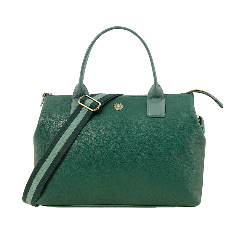 這款素色手提包,採用純素皮革製成,以優雅單色搭配同色系的提把與肩帶,以不同深淺打造出包包設計的立體感。