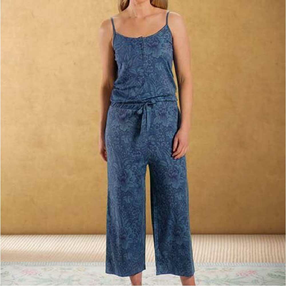 這款夏季 Casa dei Fiori 細肩帶連身褲,為您的衣櫃增添色彩繽紛且優雅的氣息。這款連身褲長及腳踝,寬腿。腰部有柔軟的鬆緊帶和配套腰帶,您也可以將這套西裝穿在襯衫上。連身褲各處均採用美麗的藍色 Casa dei Fiori 設計,令人著迷。色調圖案具有精緻的花卉線條畫。這款連身褲採用棉質莫代爾和彈性纖維混紡布料製成,手感極為柔軟。