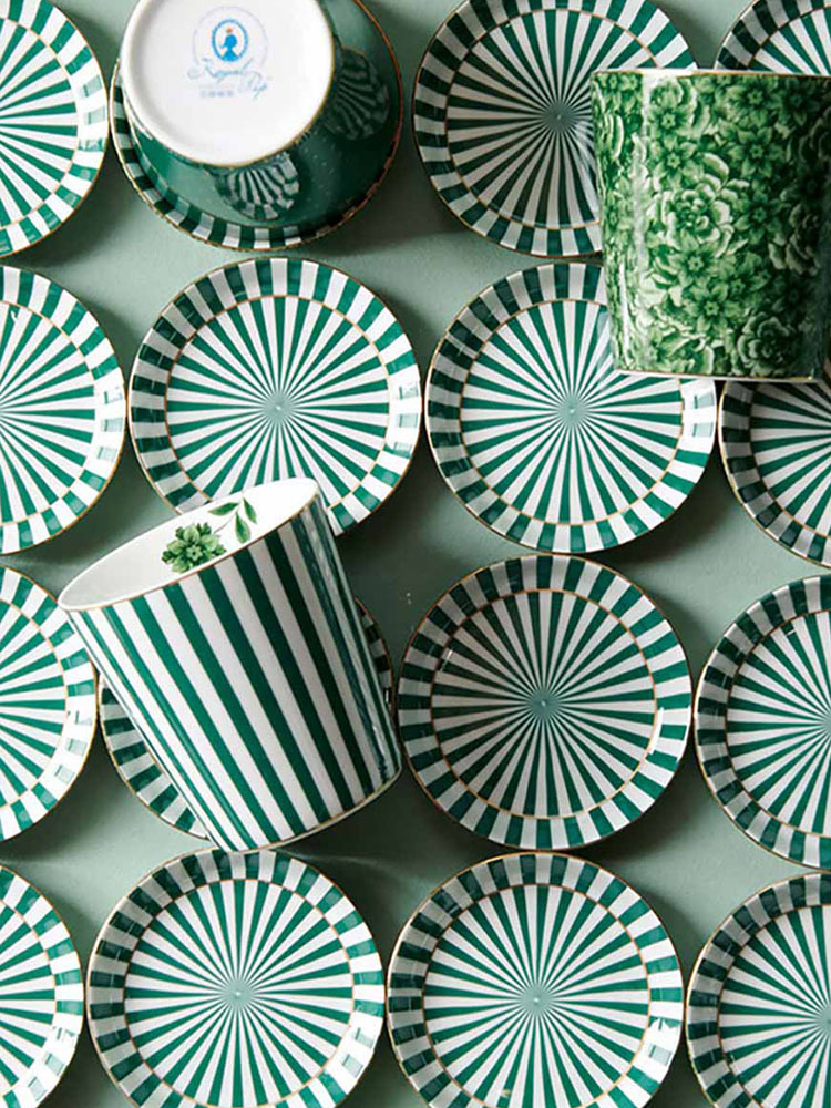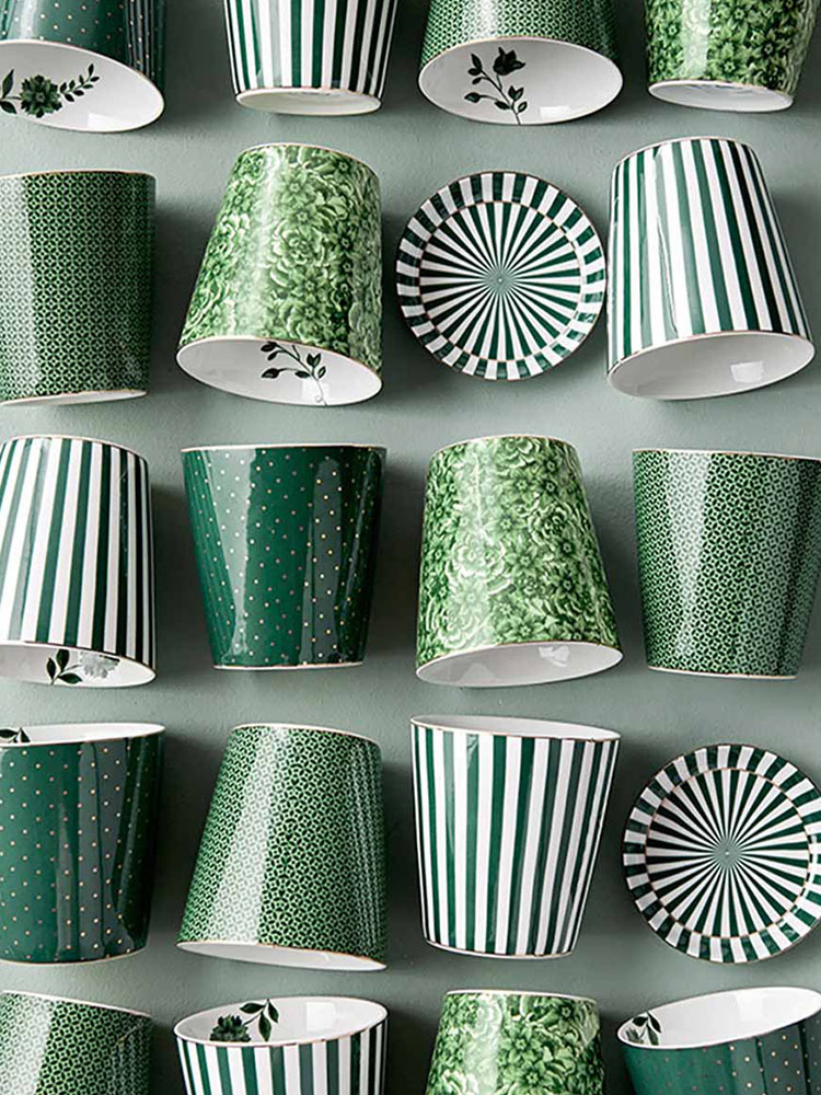 Jolie系列馬克杯組,以異國情調的花朵、棕櫚樹和動物作為設計,妝點上金色圓點與藍色細節,設計精美細緻。