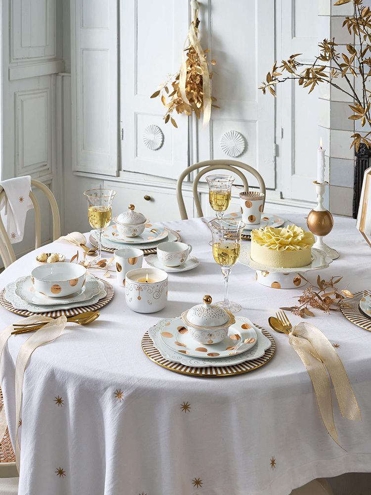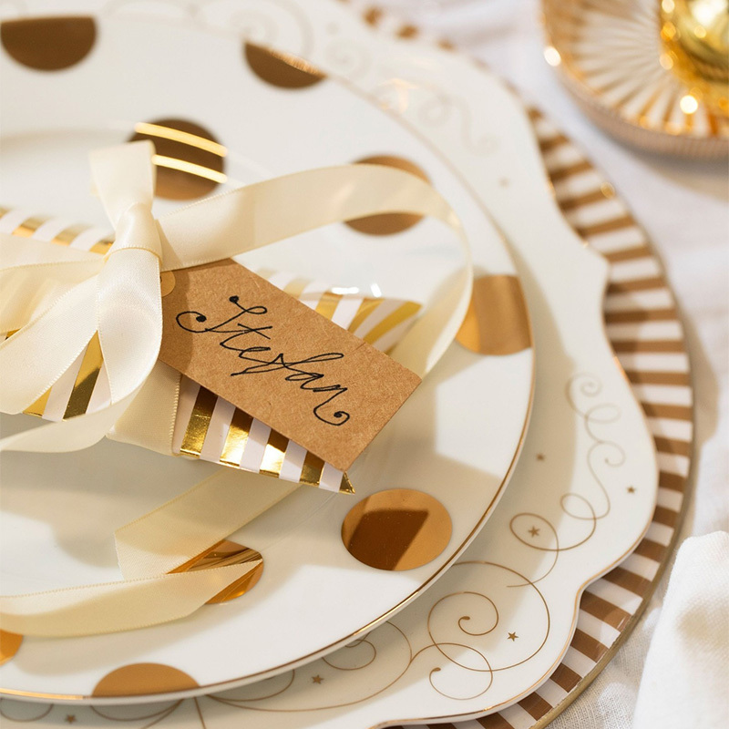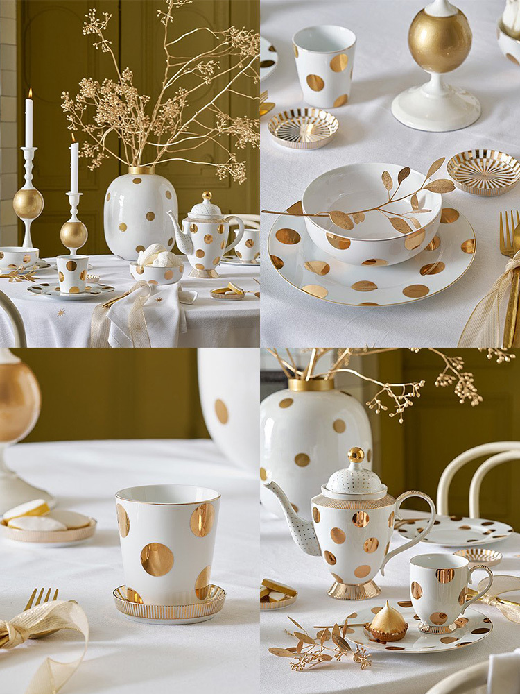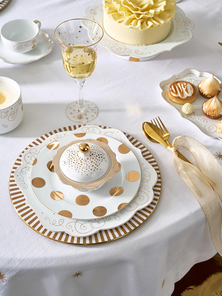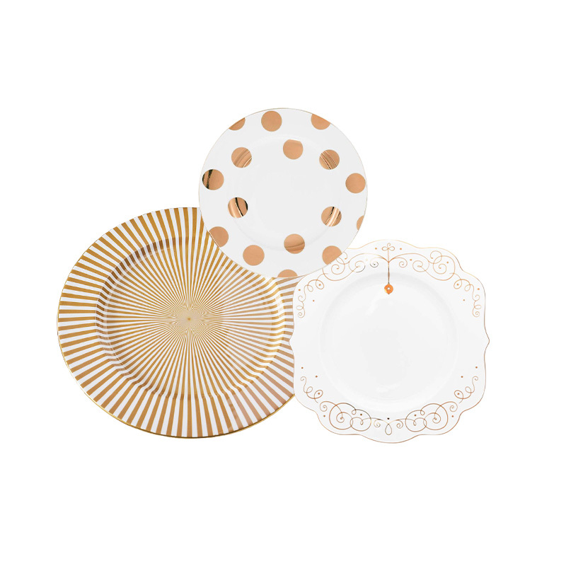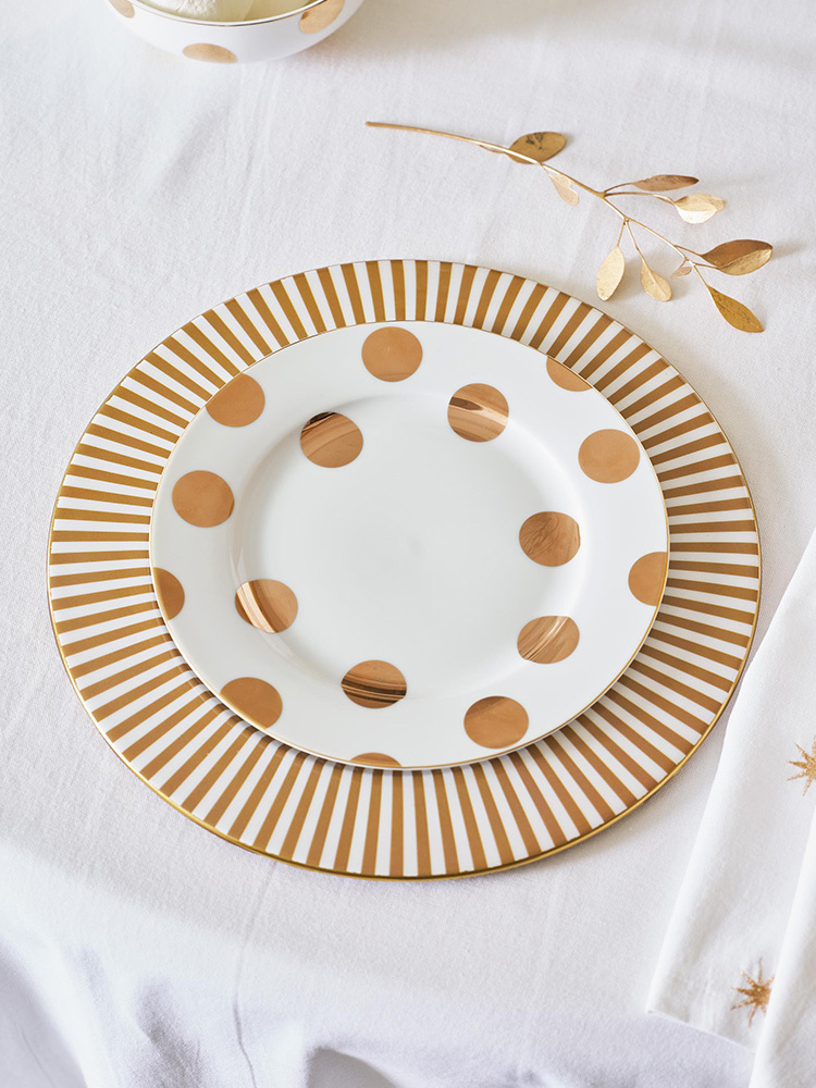 - 金屬條紋盤32CM + 皇家白盤子28CM + 圓點盤子23CM