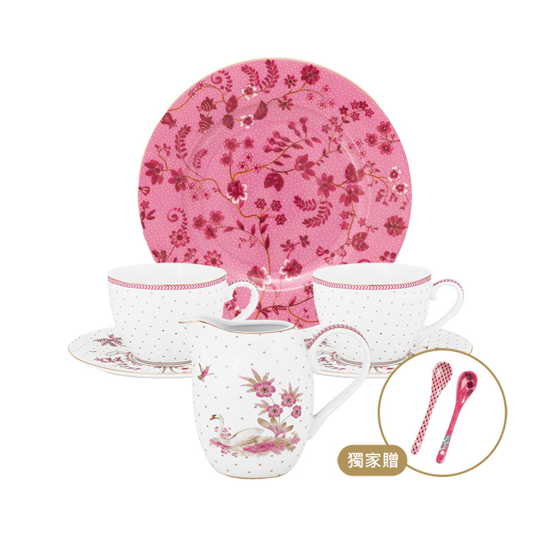 - 杯碟組280ML X 2個 + 盤 17CM + 小壺250ML + 匙13CM X 2個
