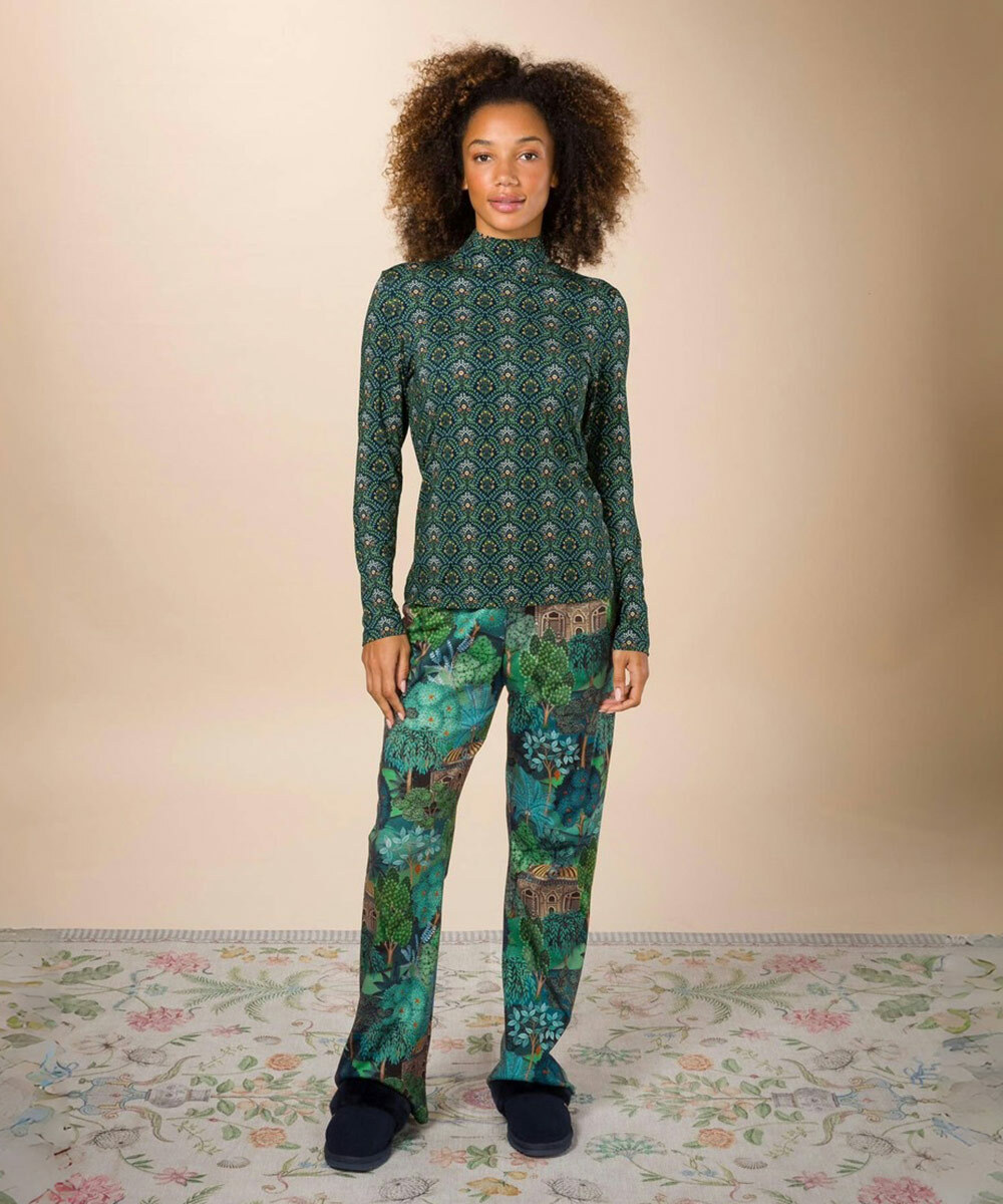 質感印花高領長袖上衣,採用Bailamos印花設計,圓形花簇圍繞著植物枝葉清新優雅,搭配細緻面料,打造居家穿著的極致舒適感。