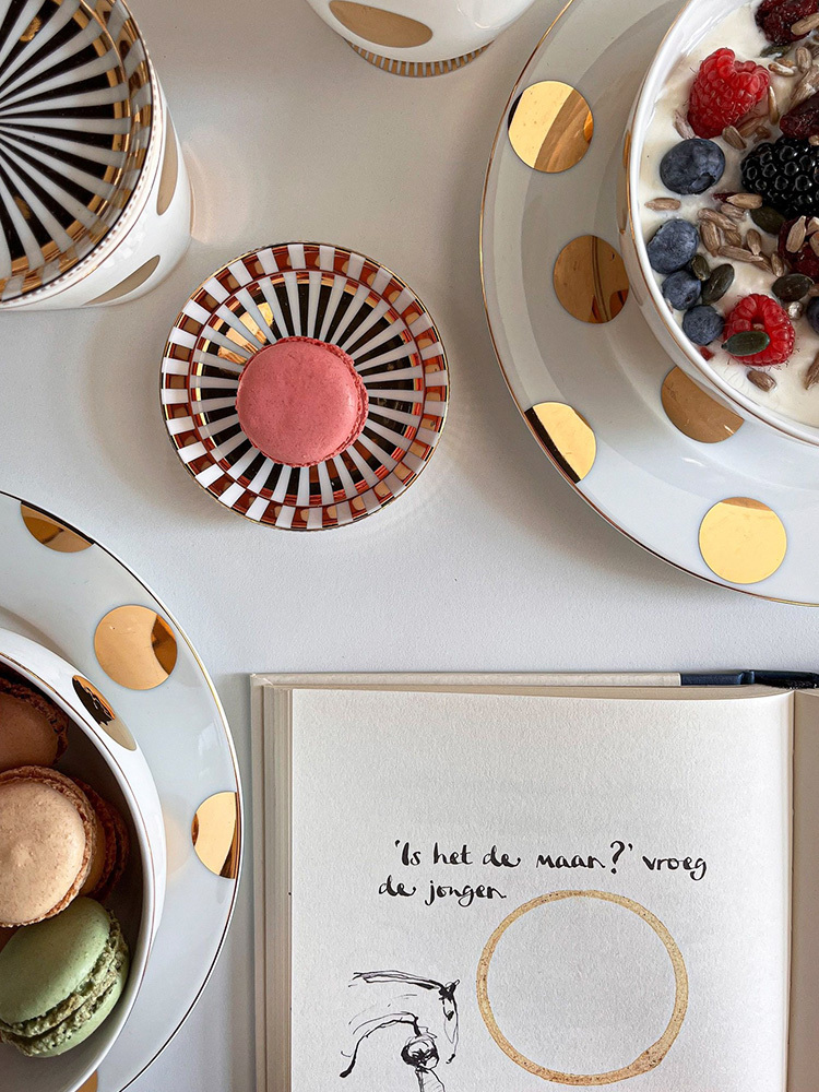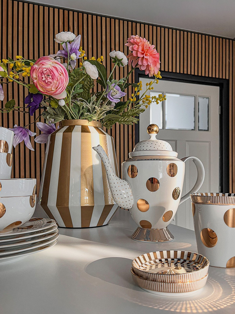 Dot Delight系列茶壺,閃亮的金色圓點與條紋的結合,不僅吸睛還帶有一絲可愛俏皮。