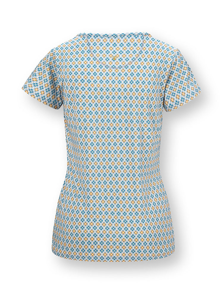 短袖圓領上衣,採用Mojo小花圖樣作為印花,