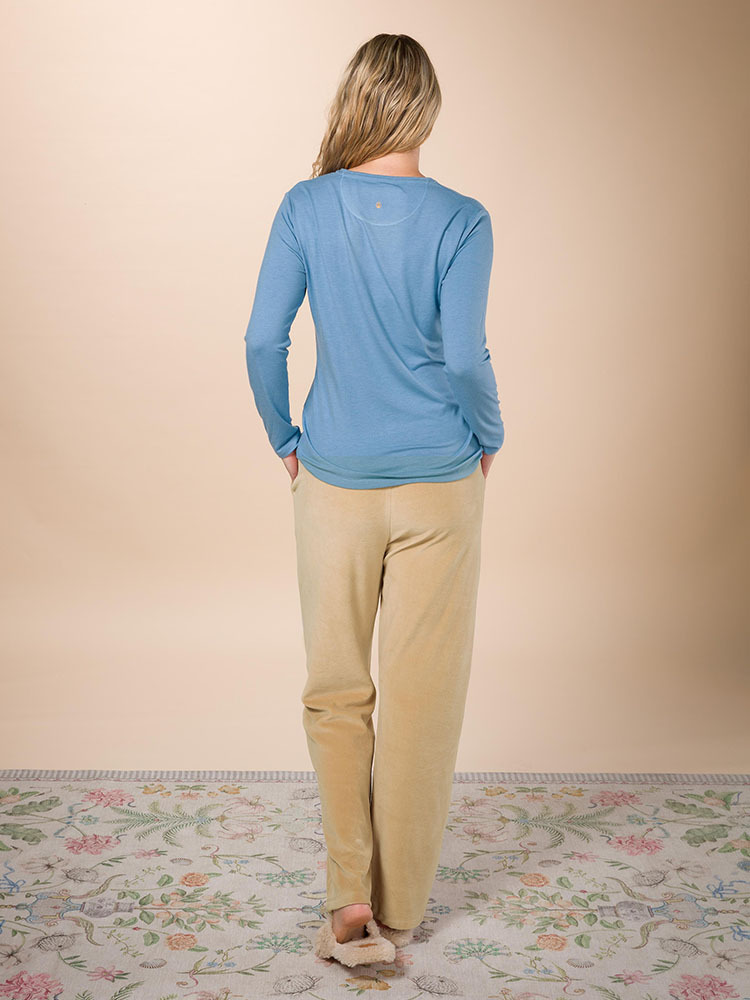 Tom 上衣長袖混紡純色淺藍色是一件長袖上衣。上衣由極軟的彈性黏膠製成,確保最佳舒適度。這款上衣採用漂亮的高領設計,非常適合寒冷的天氣。淺藍色的純色設計使這款上衣成為任何服裝的完美基本款。