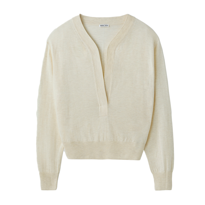 [RECTO] 韓國象牙白深V領開襟毛衣