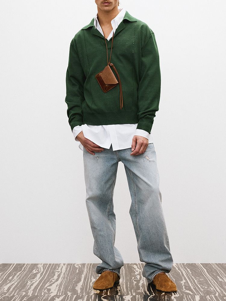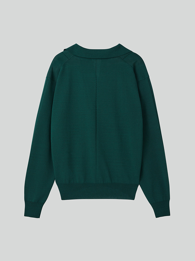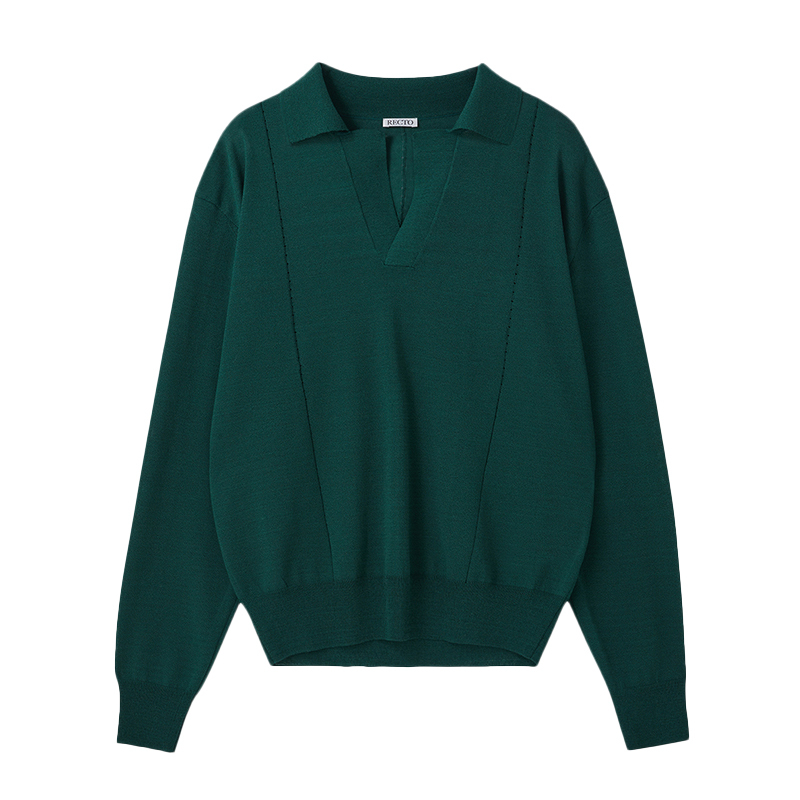 [RECTO] 韓國墨綠寬鬆長袖POLO衫