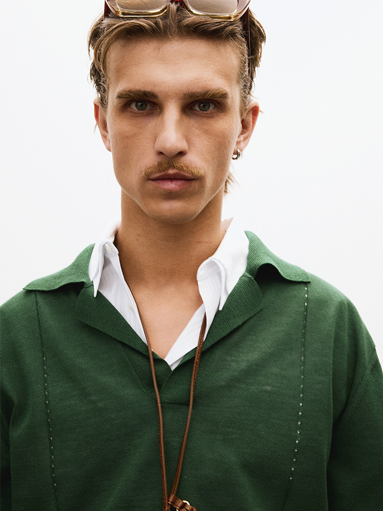 結合細節拉鍊、雙領、外露縫線、非對稱設計,是品牌作品中常見的設計語彙。