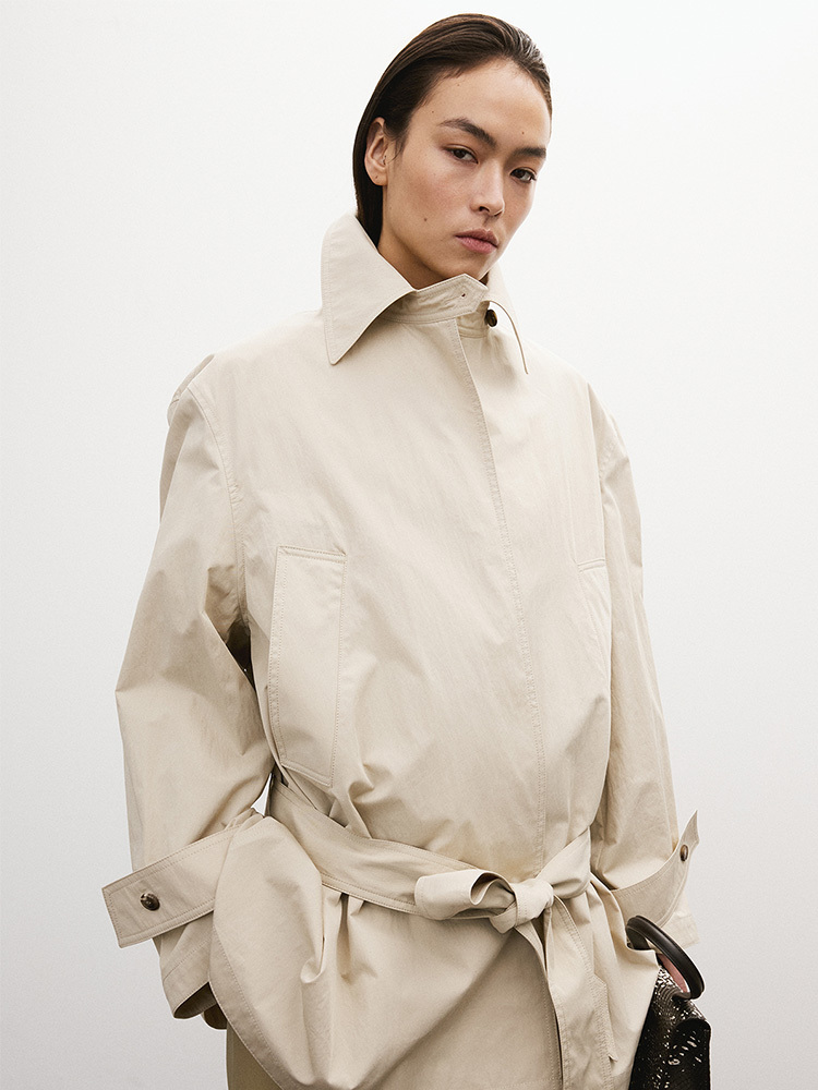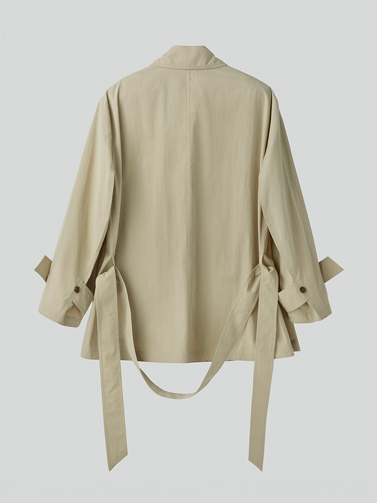 [RECTO] 韓國淺卡其寬鬆繫袋短風衣外套