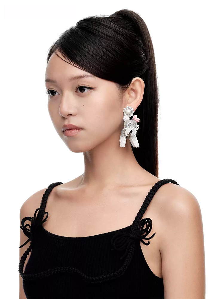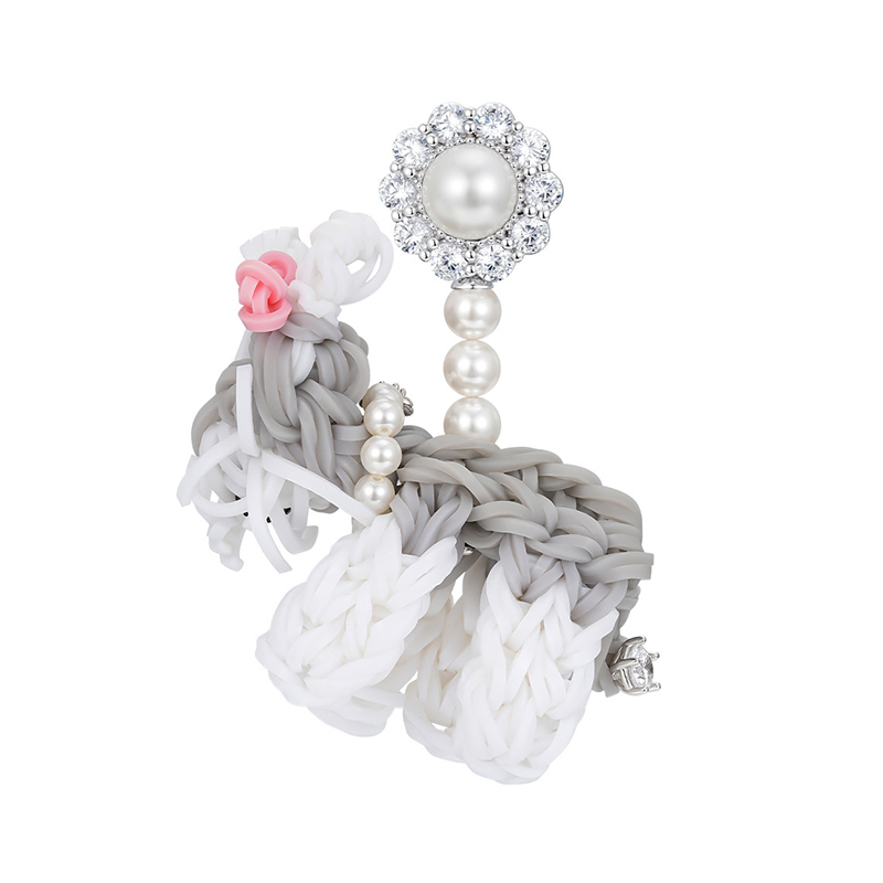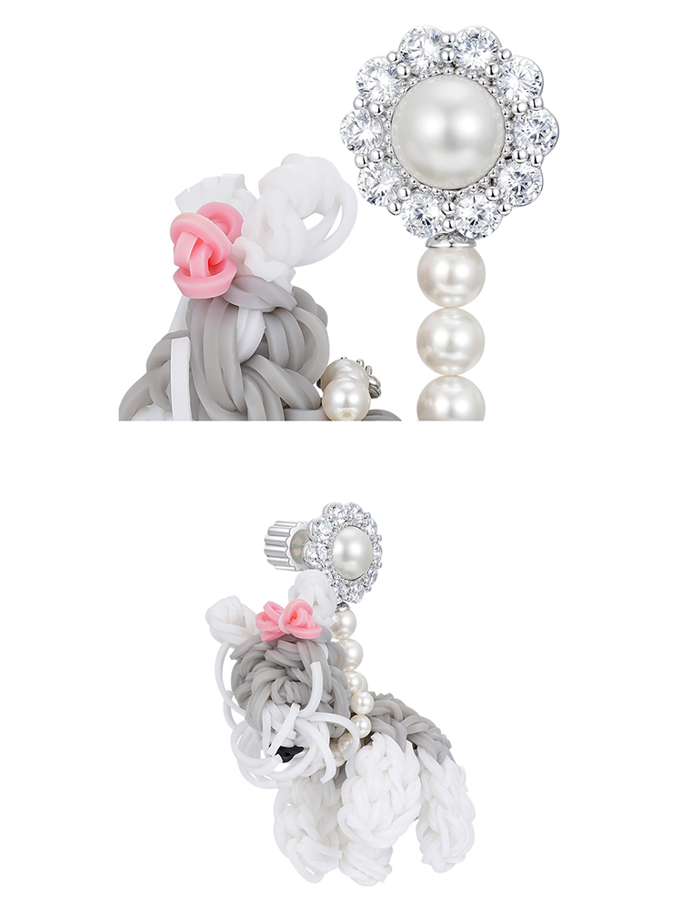[SHU SHU TONG] 編織白灰狗狗珍珠耳環(單隻)