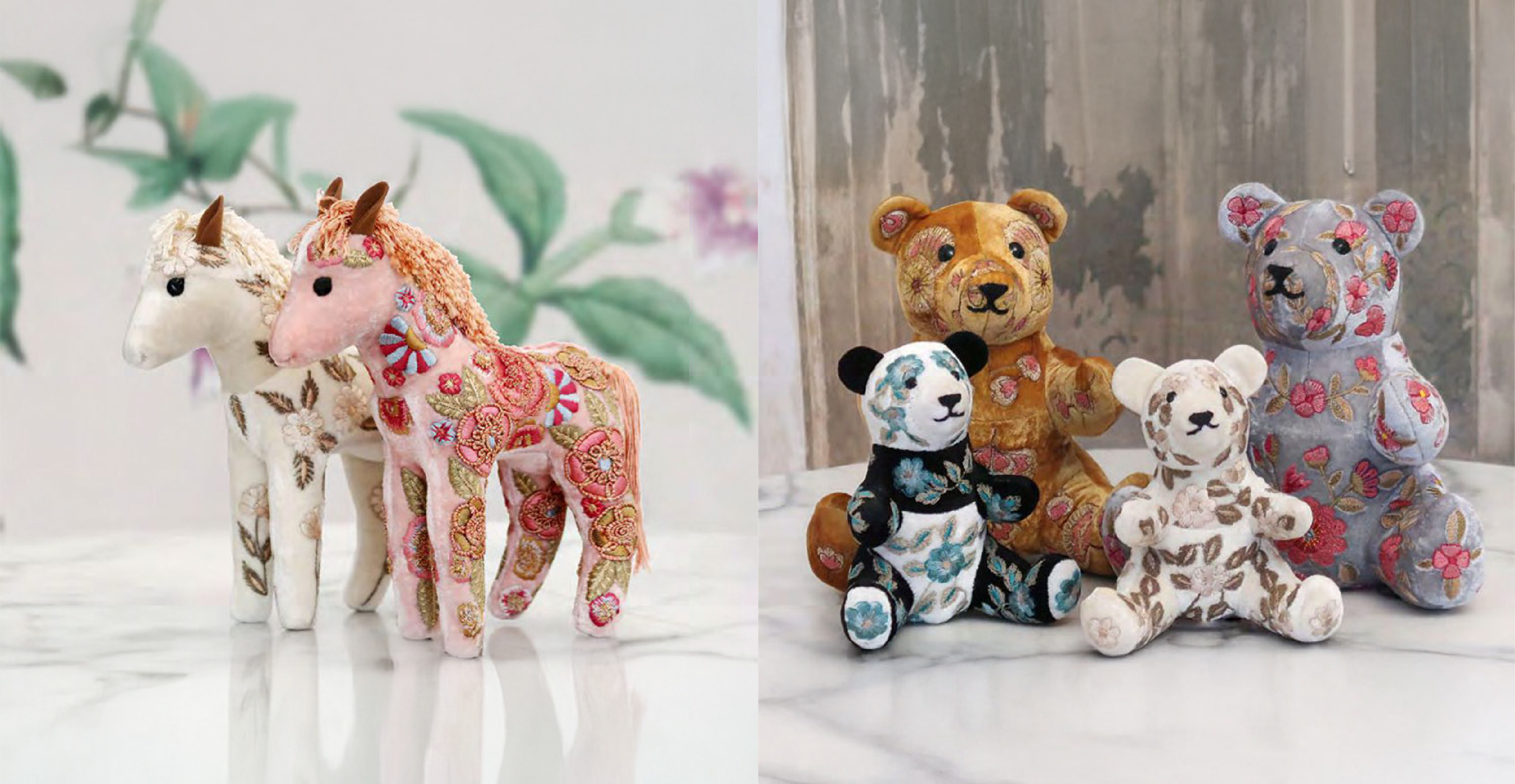 除此之外,Anke Drechsel的傢飾玩偶系列,更是頂級工藝的展現。動物玩偶採用頂級絲綢與天鵝絨面料,搭配上繁複的精細繡花,視覺上令人嘆為觀止。Anke Drechsel的家用系列以及刺繡配件,皆完整體現大師級工匠對於刺繡毫不妥協的最高水平,使得每件作品都獨一無二,成為居家的藝術品。