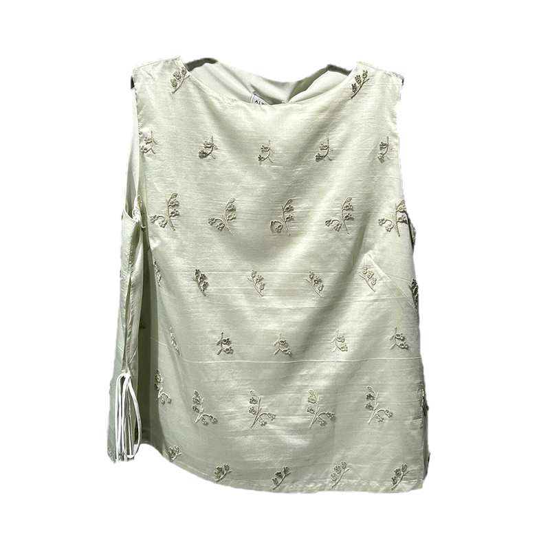 - Siggi 上衣採用寬鬆的無袖輪廓和寬領設計
