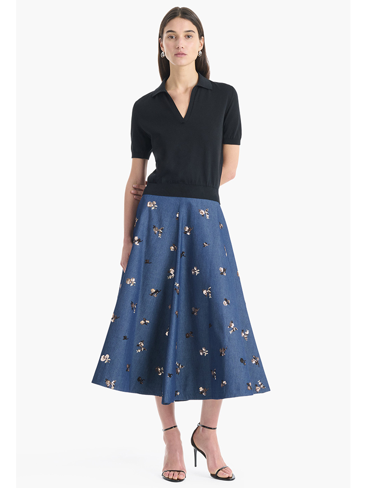- A字中長裙擺,自然貼合腰線,後背採用隱形拉鍊設計