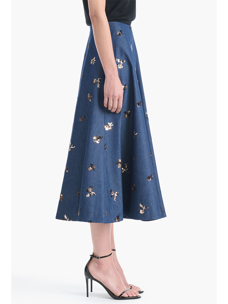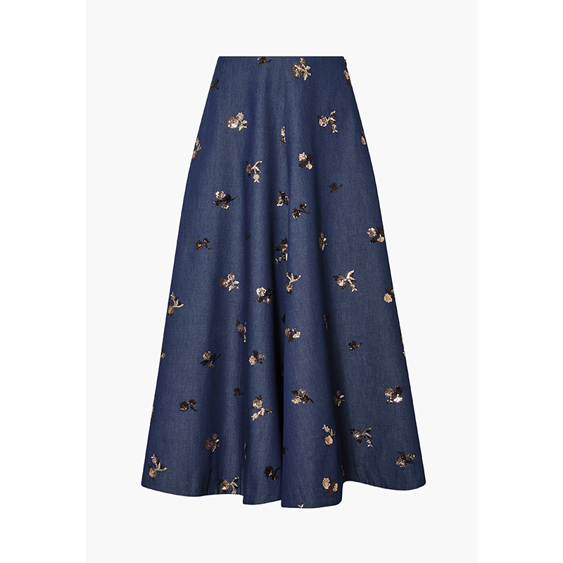 - 裙身飾以亮片和刺繡,呈現出精緻的花卉圖案